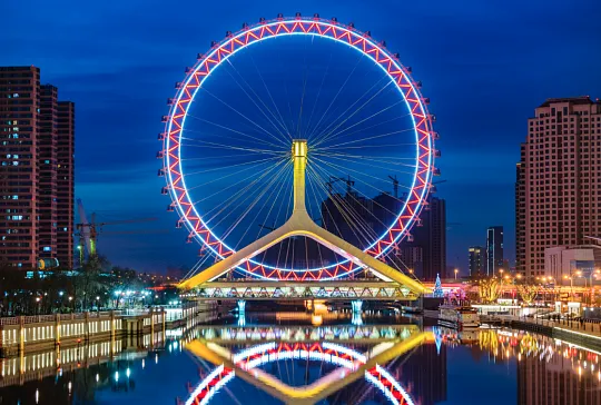 津湾广场拍世纪钟+解放桥全景,广角镜头拍出震撼大片;前往金钢桥隐藏机位,打卡天津之眼与海河同框的绝美画面,避开摩天轮排队高峰,拍出专属小众视角;夜晚的天津之眼灯光璀璨,氛围感直接拉满。
