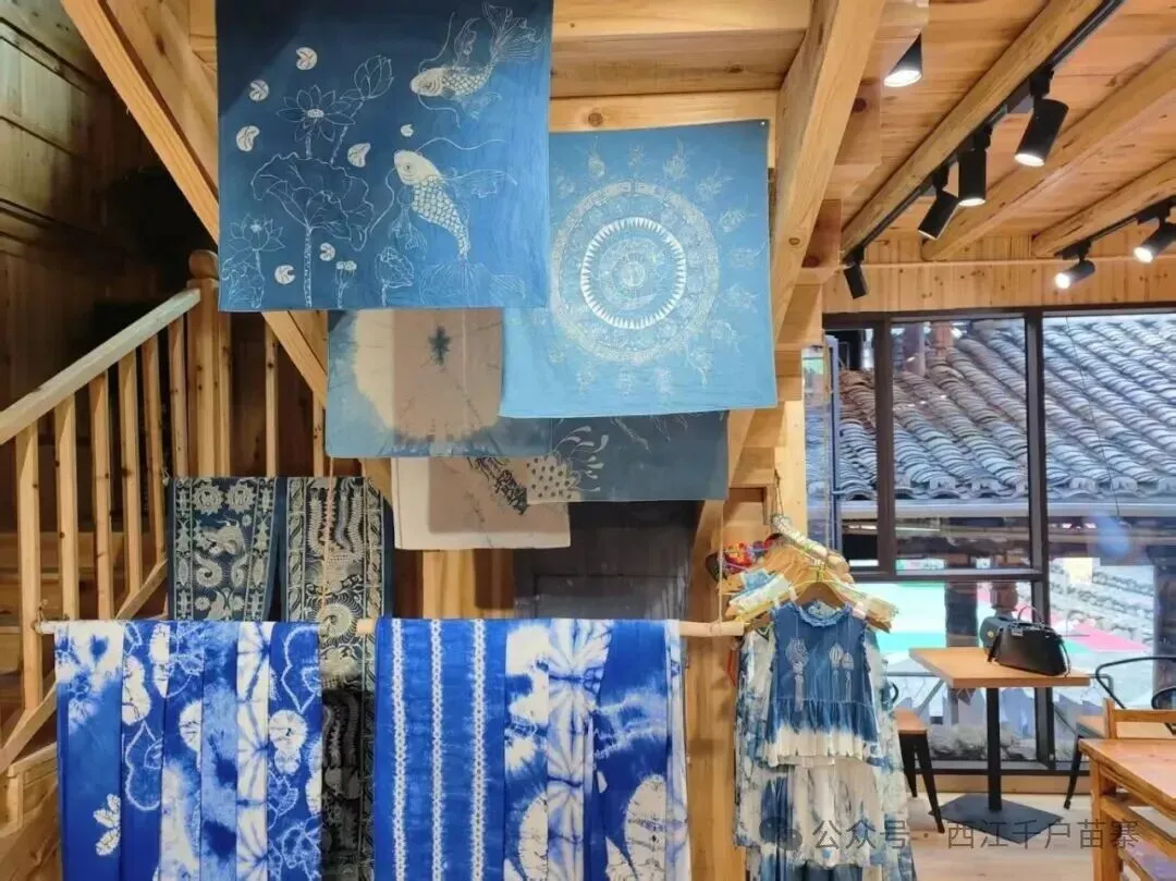 苗草田蜡染体验店:藏在田园观光区的 “治愈角落”,既能免费围观蜡染师傅创作,也能付费亲手尝试 —— 从勾勒图案到浸泡染色,全程参与制作专属蜡染作品,把苗寨的色彩带回家,再也不用跟景区手作体验区的人群 “抢位置”。