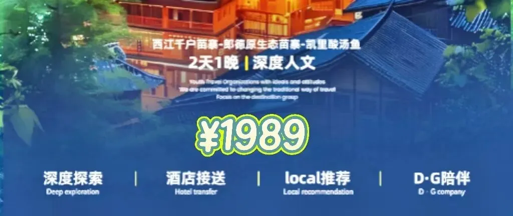抵达贵阳 → 前往西江千户苗寨walk→观景下午茶→蜡染主理人→苗寨夜景→宿西江 →自由活动或休整