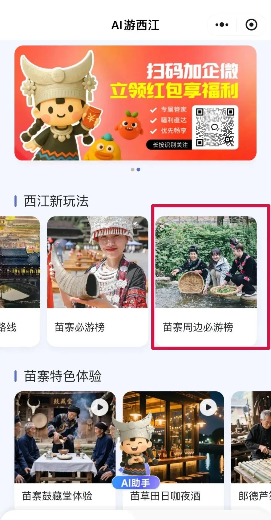 ①打开微信扫描下方二维码进入小程序或者微信搜索“AI游西江”小程序并关注,点击“优惠人群认证”专栏即可进入认证通道。