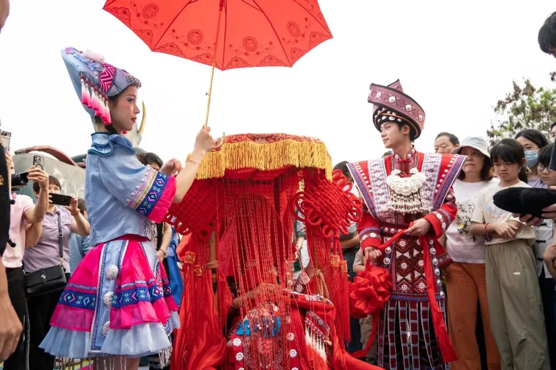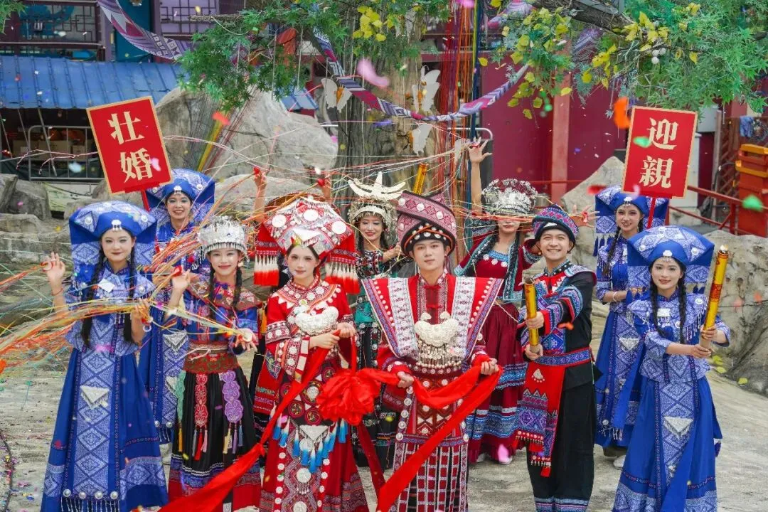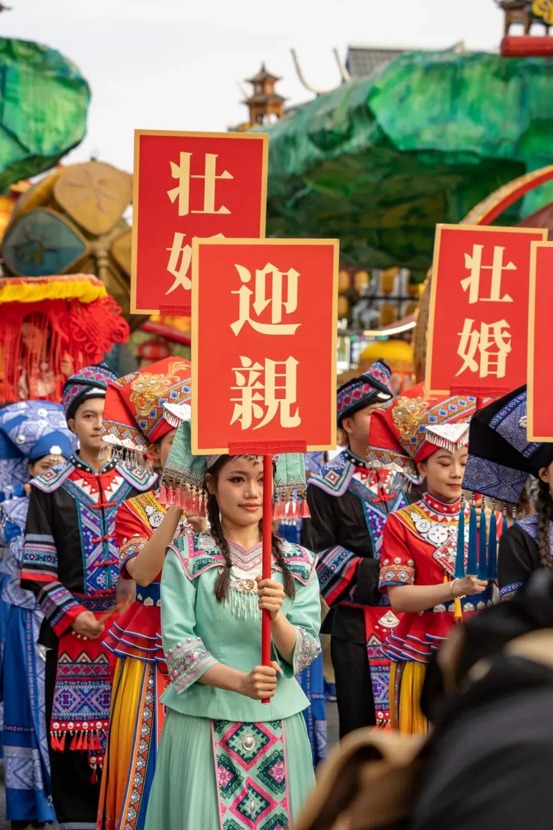 体验民俗互动游玩、换装拍照,再逛一圈美食市集,享受壮乡美食与壮族歌舞环绕的盛宴。