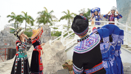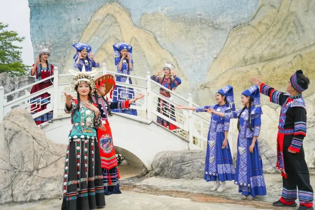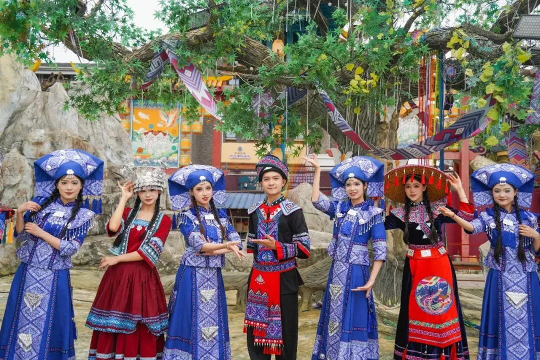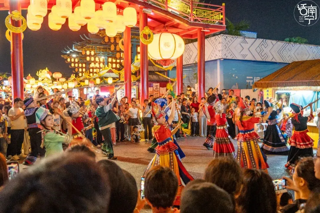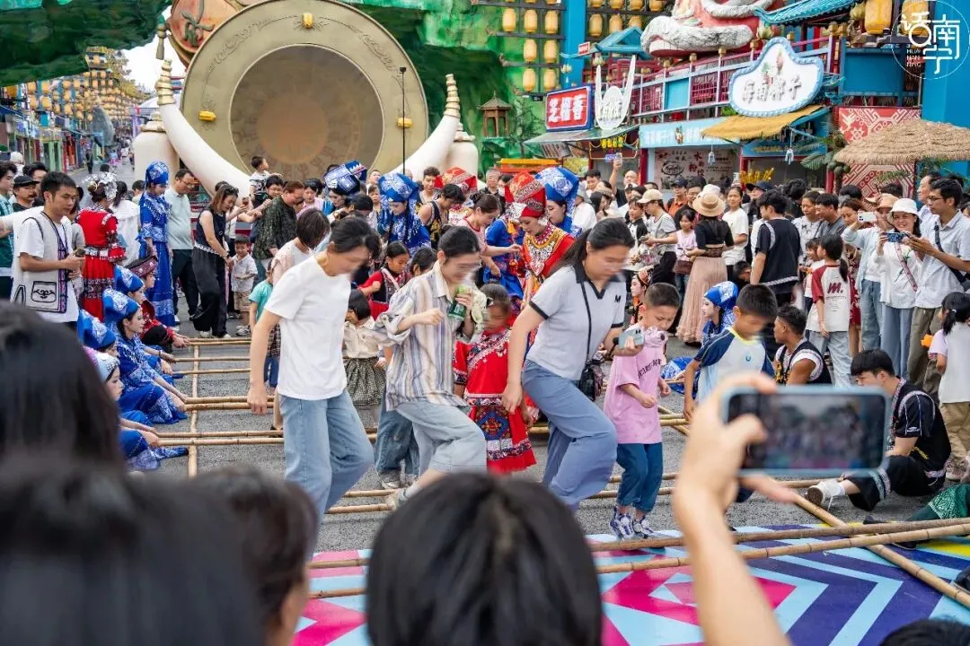 此外,每天还有民族快闪舞轮番上演,《花样竹竿舞》、《壮家敬酒歌》、《山歌迎客来》、《钱鞭舞》......欢歌热舞开启曼妙时光。