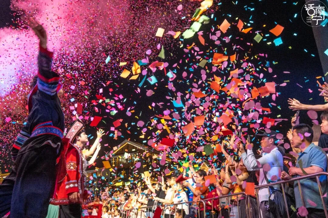 现场还有山歌电音蹦迪等你加入!当传承千年的壮乡山歌,遇上超劲爆的DJ打碟,激昂的鼓点、欢快的节奏点燃现场气氛,沉浸式置身于音乐的海洋之中!
