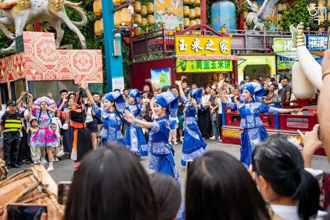 色彩斑斓的民族服饰,伴随明快的手鼓节奏跃动,为假日注入别样的热情。
