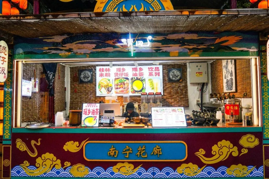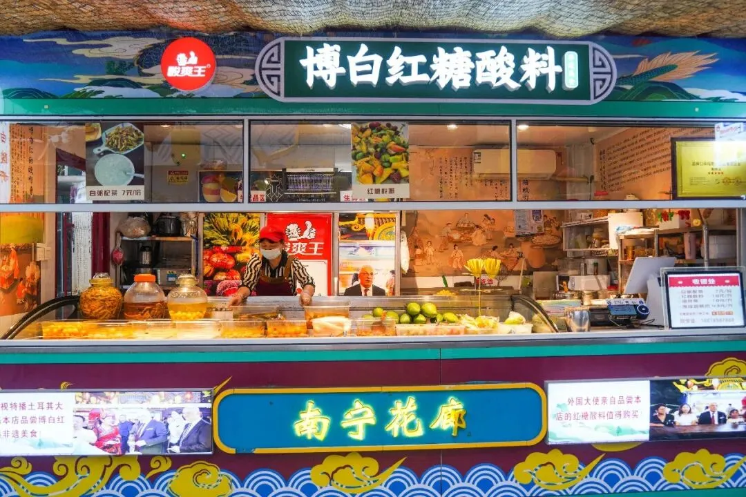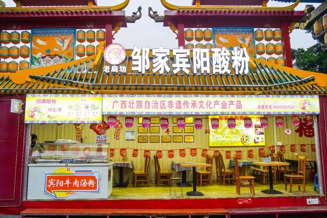 玩累了,还有街区特色美食嗨吃不停,酸嘢、桂林米粉、老友粉、宾阳酸粉......一口解锁壮乡非遗味道!