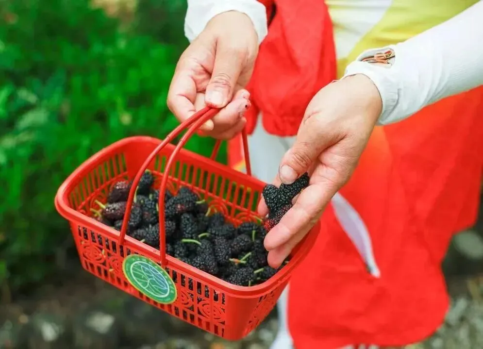 五一期间,荻港正在举办“荻港桑果季”活动,古村里的桑葚果园迎来最甜蜜的季节,你可以亲手采摘酸甜可口的桑果。