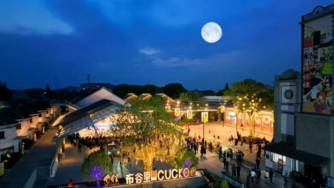 等到夜幕降临,练市镇的蓝调时刻和灯光组合成最美的夜景,人群涌动、灯光璀璨,站在广场上,你已经完美融进这座小镇。