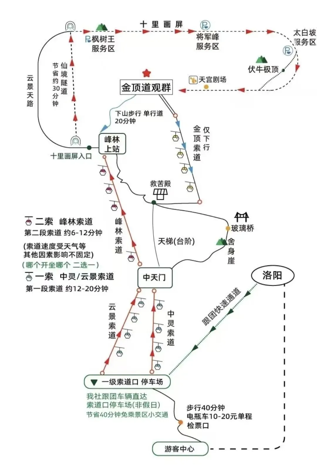 ⭐索道费用:一级索道(中灵索道至云景索道)往返130元;二级索道(峰林索道)往返80元。(12岁及以下且1米4以下免索道票)