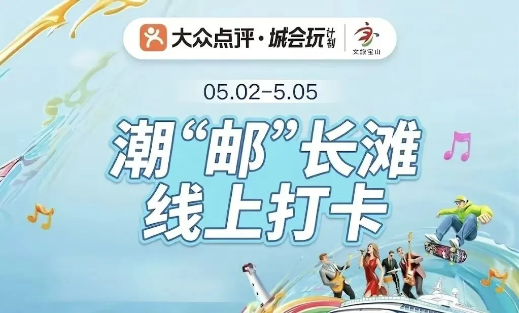 线上打卡:活动期间打开美团或大众点评APP,搜索“宝山滨江潮玩地图”,完成打卡即可抽奖,景点门票、邮轮代金券、文旅周边等你赢。