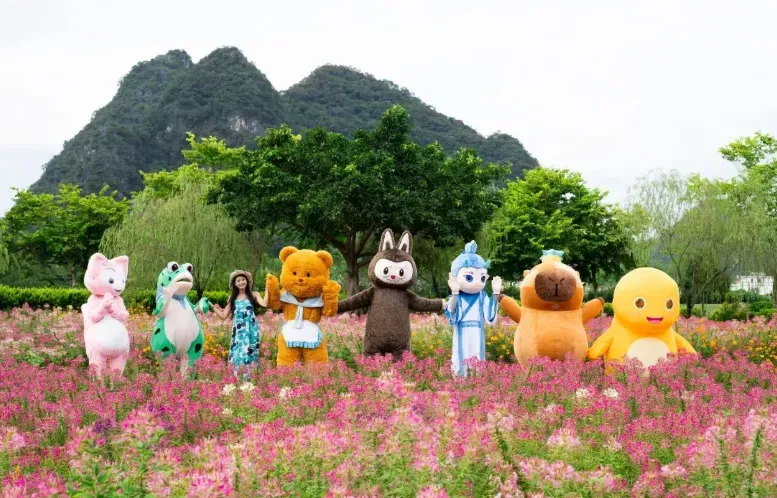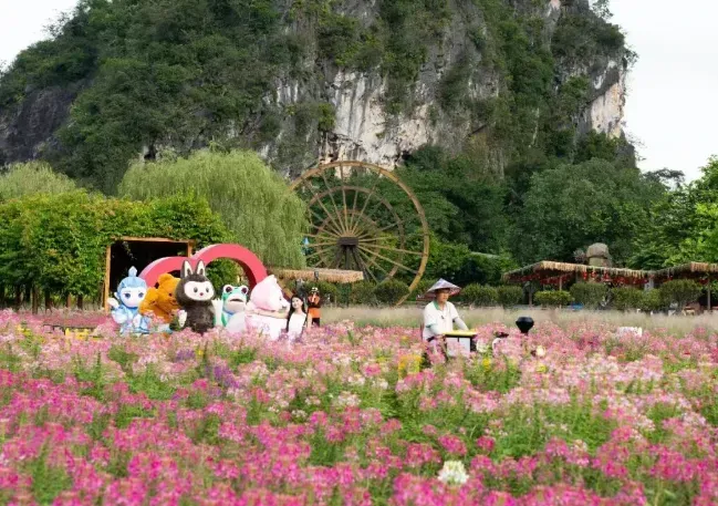 下午:网红小火车穿越花海 🚂直奔“峰林晓镇”,坐上五彩小火车,哐当哐当穿过花海