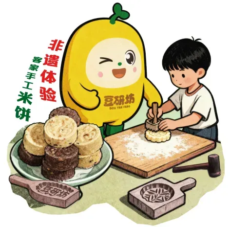 ✅ 打手工米饼:用传统饼模印“福”字,米香四溢