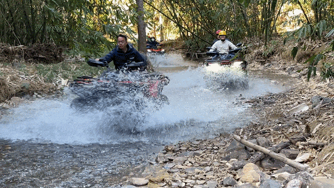 赛道全程约6.8公里,得天独厚的天然赛道,驾驶着450排量的春风全地形车上山涉水爬坡穿越竹林,全程将近一小时。