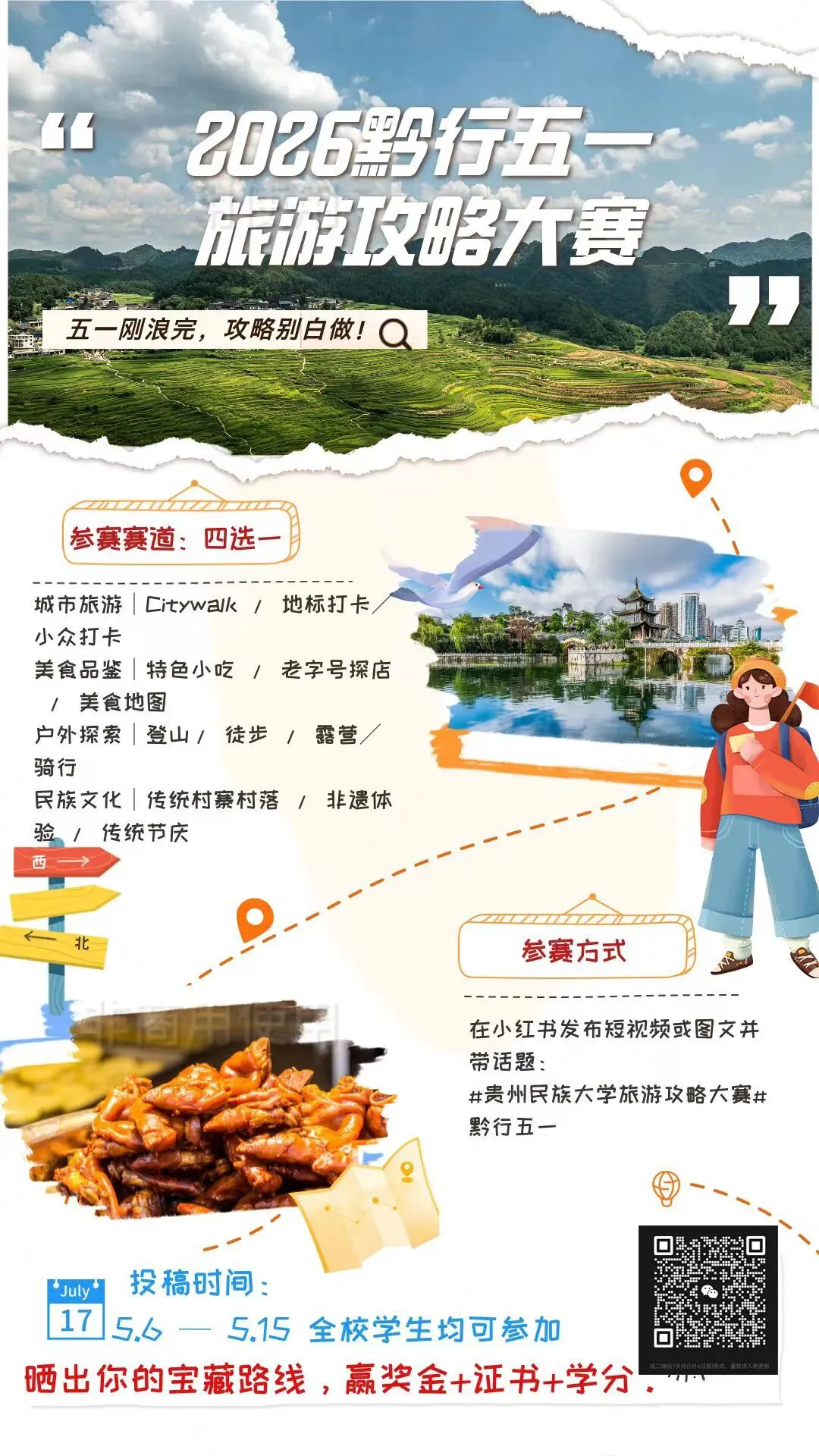 贵州民族大学“黔行五一”旅游攻略大赛正式启动——把你的宝藏路线晒出来,奖金、证书、学分统统带回家!