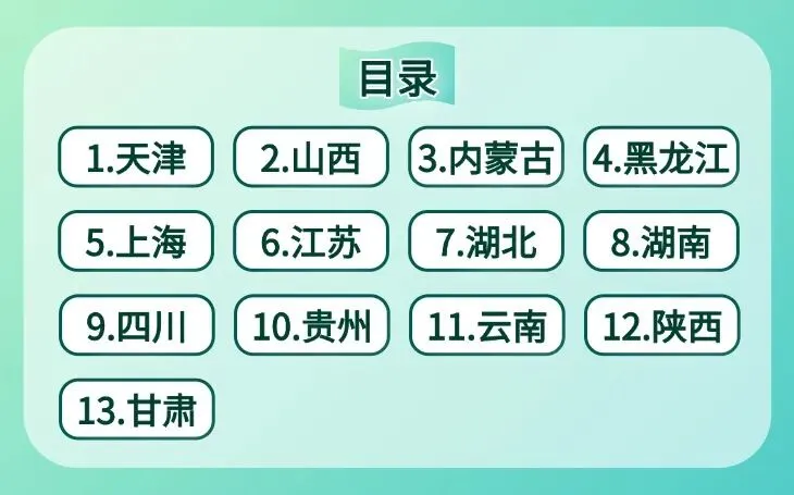 11云南 12陕西 13甘肃