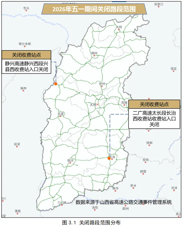二广高速太长段长治西收费站智慧化扩容改造工程,定于2026年4月7日至6月21日进行施工,施工周期为75天。为保证通行安全,施工期间将采取封闭该收费站的交通管制措施,原通行车辆可绕行G55二广高速公路屯留收费站、长治南收费站,G22青兰高速公路长治北收费站。