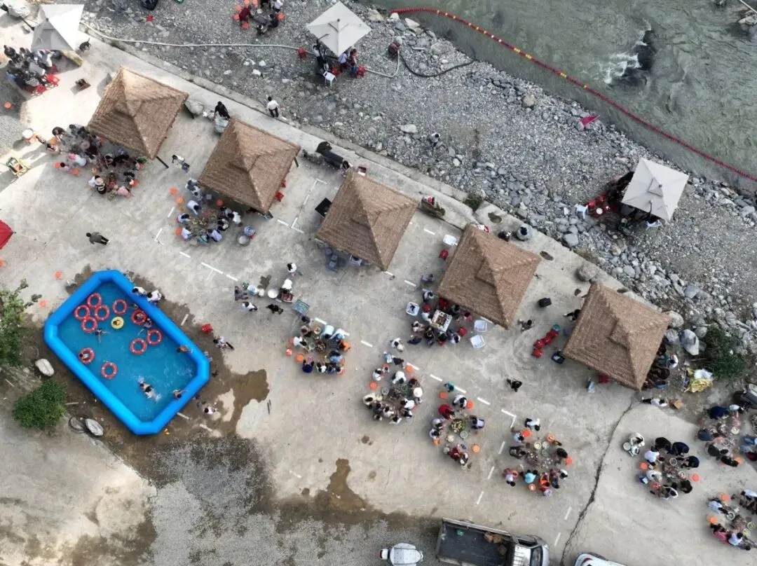 拉术村拉术营,藏于青山绿水间,生态禀赋得天独厚。这里草木葱茏、溪流潺潺,负氧离子充盈,是亲近自然的绝佳去处。营地主打户外体验,溪边烧烤区可享烟火美味,露营地能枕星河入眠,清澈浅滩适合戏水纳凉,炎炎夏日里凉意十足。辖区内的雅朵瀑布更是点睛之笔,循着溪流溯行,看飞瀑倾泻、水雾弥漫,耳畔尽是自然交响。(距离村超球场51公里,自驾约44分钟,联系电话:15185794110)