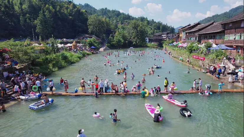 八开镇腊酉村亲子乐园漂流谷内的漂流路线平缓,非常适合亲子家庭游玩,让家长和孩子能在清澈的溪水中享受清凉与欢乐,感受大自然的魅力。设有水上儿童乐园,包含攀爬滑梯、蹦床、沙池、彩虹滑道等多种游乐设施,能让孩子们尽情释放活力。玩累了,游客可以在漂流谷旁边开展烧烤活动,能品尝到美味的烧烤。此外,腊酉村还有着丰富的历史文化,游客可以参观红军桥,感受红色文化的魅力。(距离村超球场19公里,自驾约22分钟,联系电话:15278433437)
