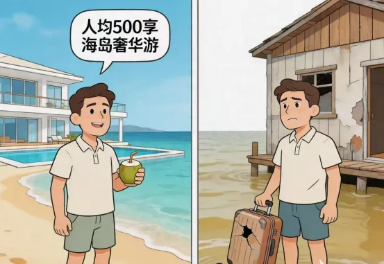坑在哪里:不法商家采取各种名义包装宣传旅游产品,通过搜索引擎、直播带货等方式以明显低于市场价格销售旅游产品,或以“旅游搭子”“定制师”“向导”“俱乐部”等名义招徕游客,在没有相关资质情况下经营团队游。