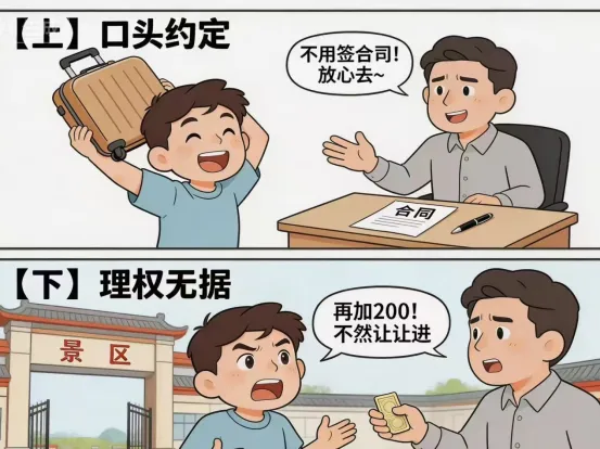 坑在哪里:购买旅游产品时,若未与旅行社签订书面旅游合同,或在合同中未明确约定交通、住宿、餐饮、自费项目等重要内容,会导致法律责任不明确,遇旅行社擅自变更行程、增加购物环节、转团拼团等问题,会造成游客权益难以保障。