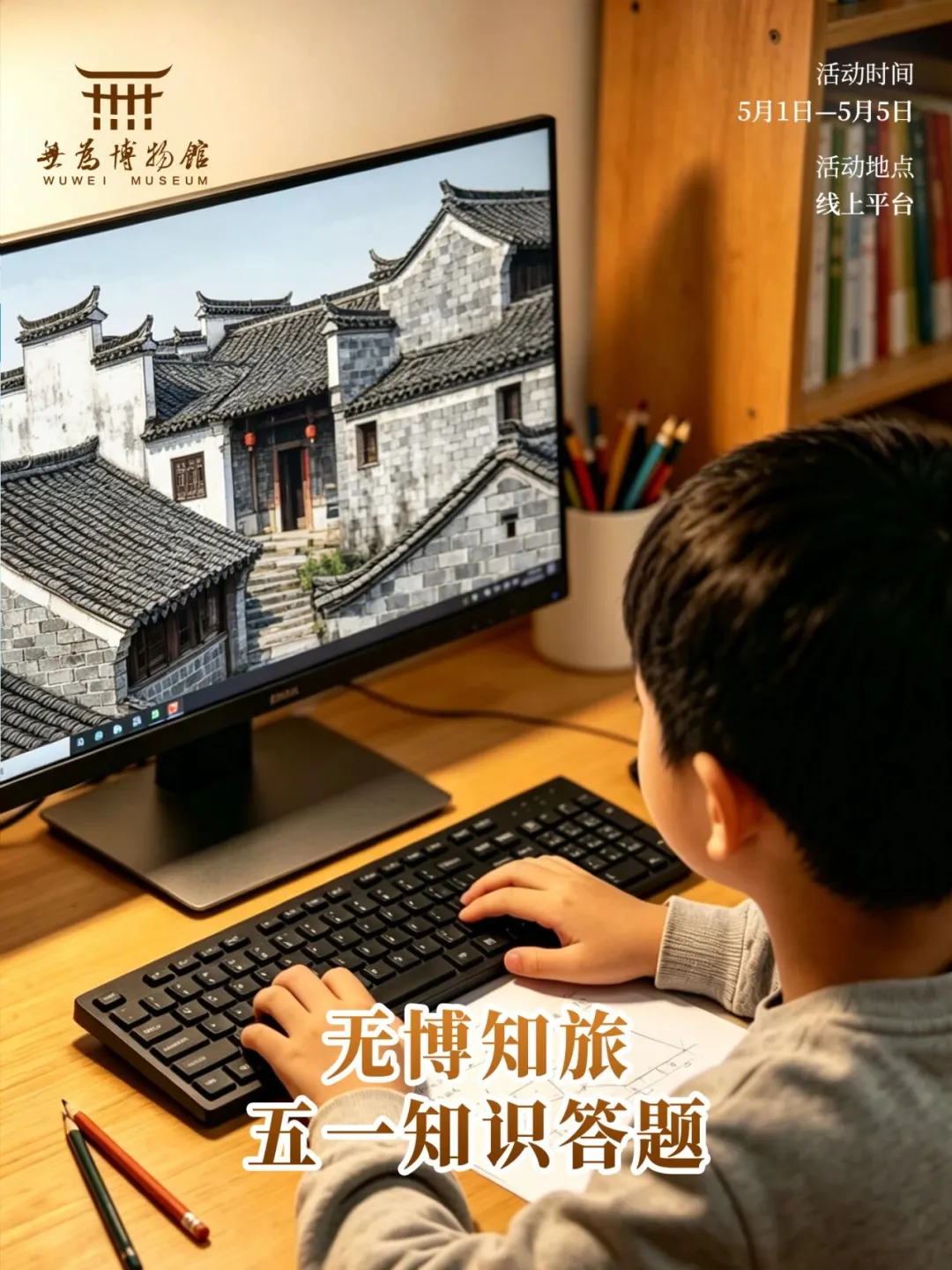 五一期间推出线上知识答题活动,内容包含文博知识、无为本地文化、节日知识等。在答题中增长见识,为假期增添知识性与趣味性。