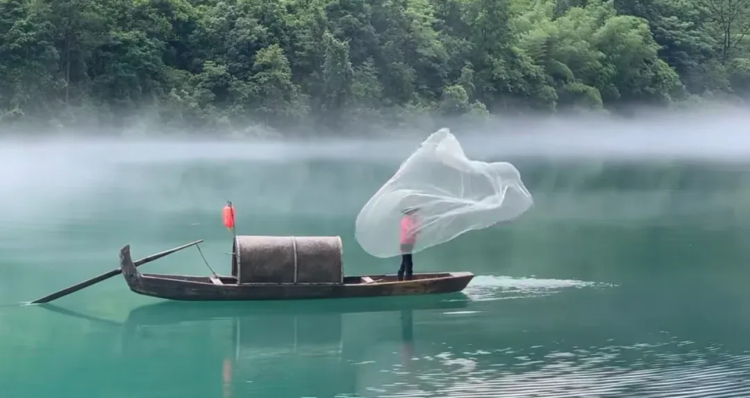 晨雾如纱,江面朦胧似仙境,