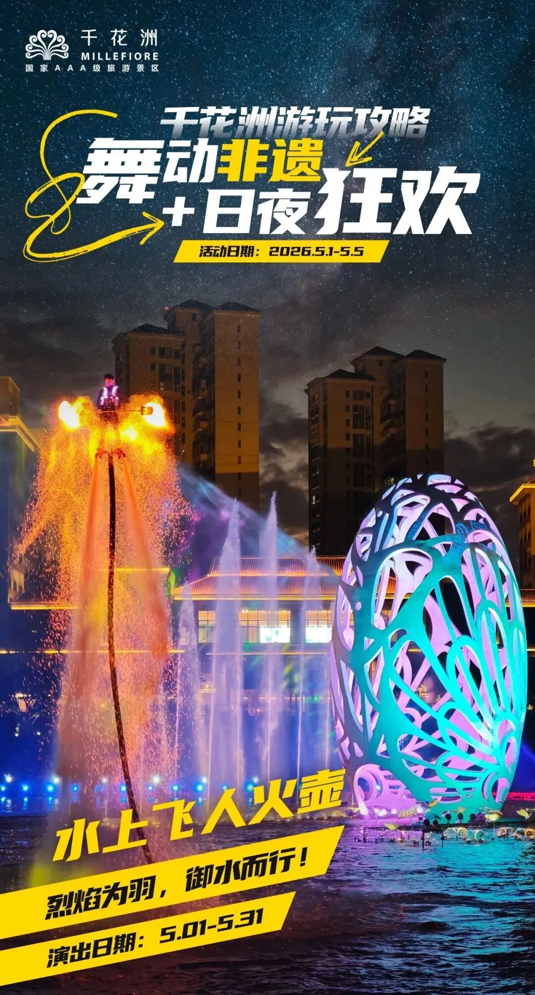 5、水上飞人:烈焰为羽,御水而行(5.1-5.31每日两场演出)。