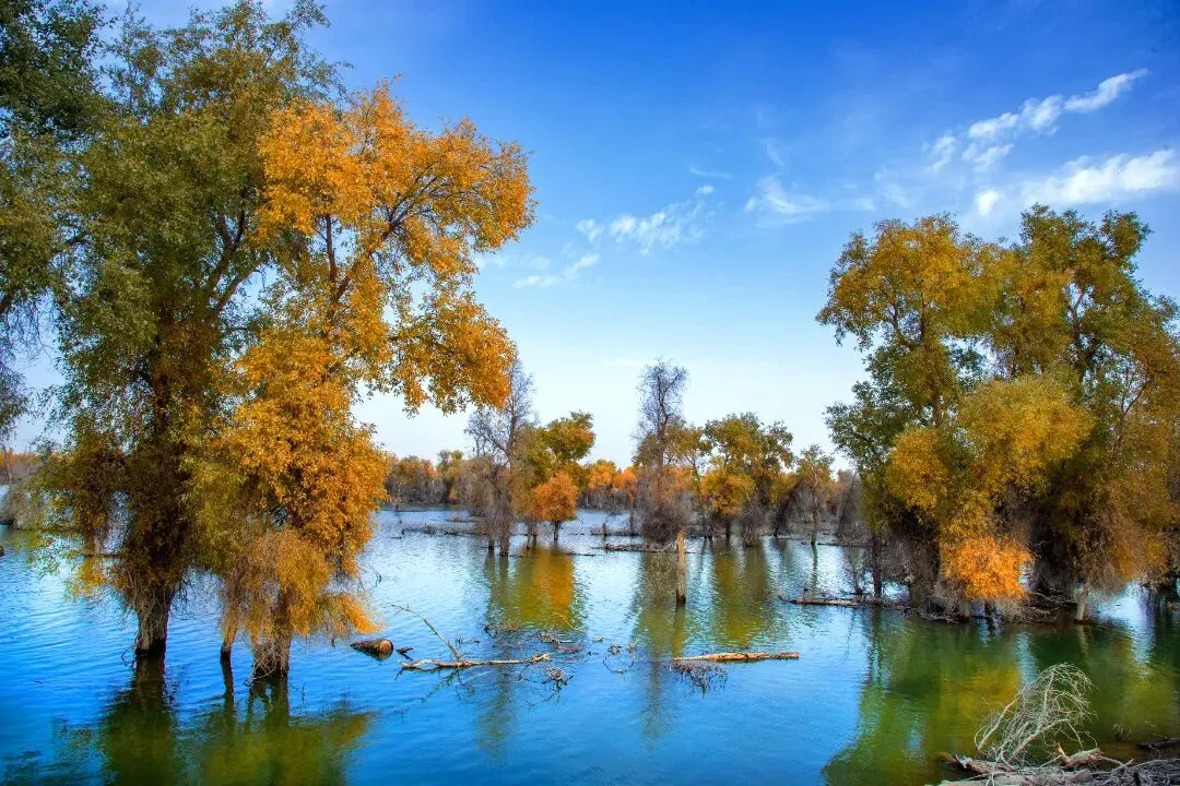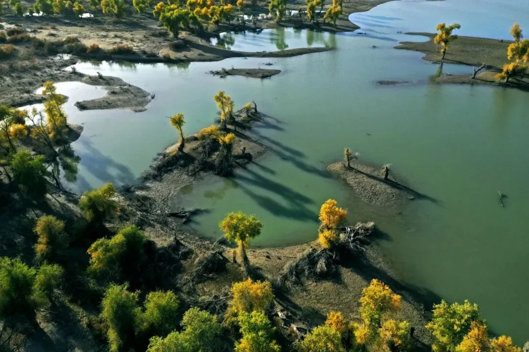 塔里木河畔的核心胡杨秘境,水域蜿蜒、胡杨林立,春夏绿意盎然,是拍照、散步、观鸟的绝佳地。