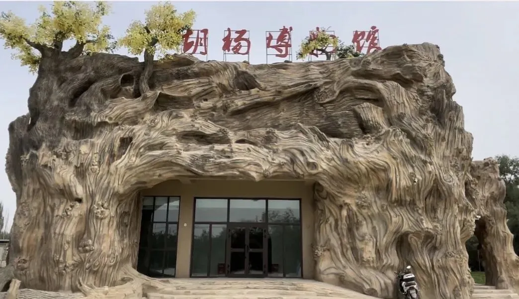 沙雅胡杨主题博物馆,形似千年胡杨古树,分自然人文展区,多板块诠释胡杨特质与沙雅戍边精神,沉浸式场景让研学体验趣味十足。