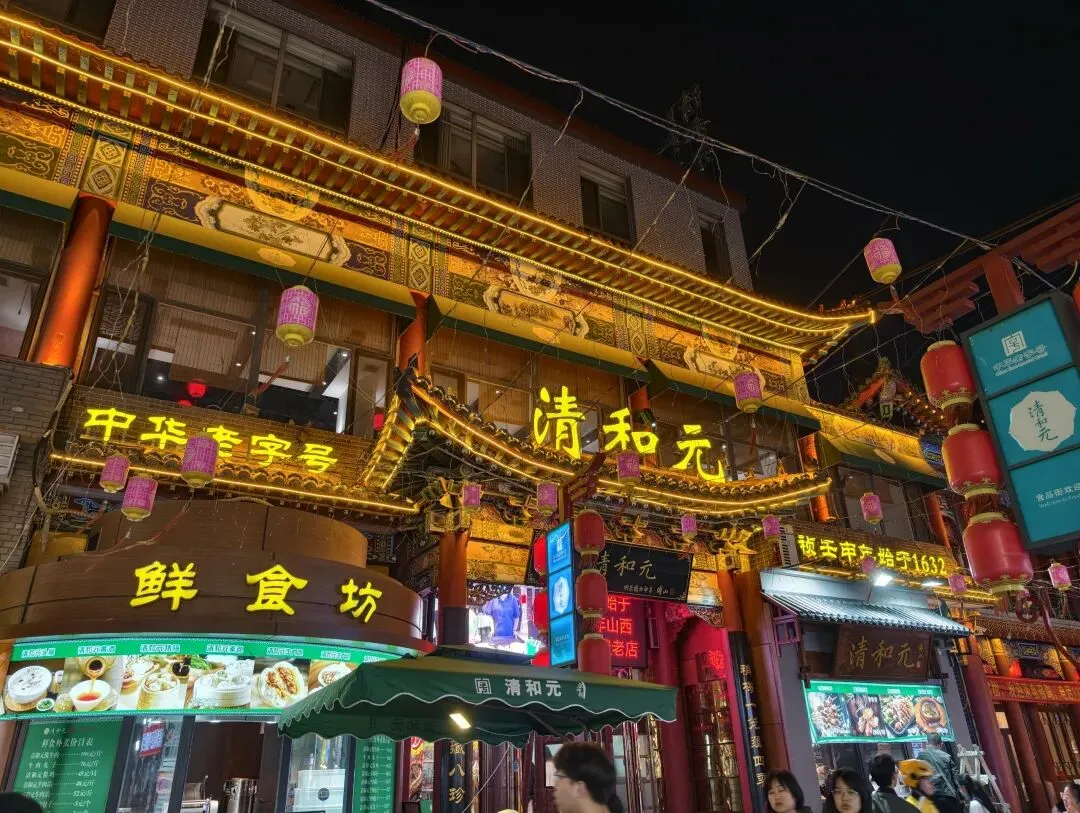 晚上:逛钟楼街+食品街夜市。从五一广场步行即到,打卡本地特色小吃:清和元头脑+烧梅(烧麦)、柳林碗托、义井沾串、汾酒冰淇淋、老陈醋冰淇淋、0酒精白酒汽水、老陈醋可乐,烟火气拉满。