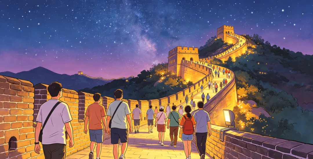 ✅夜间缆车开放:高空俯瞰夜长城