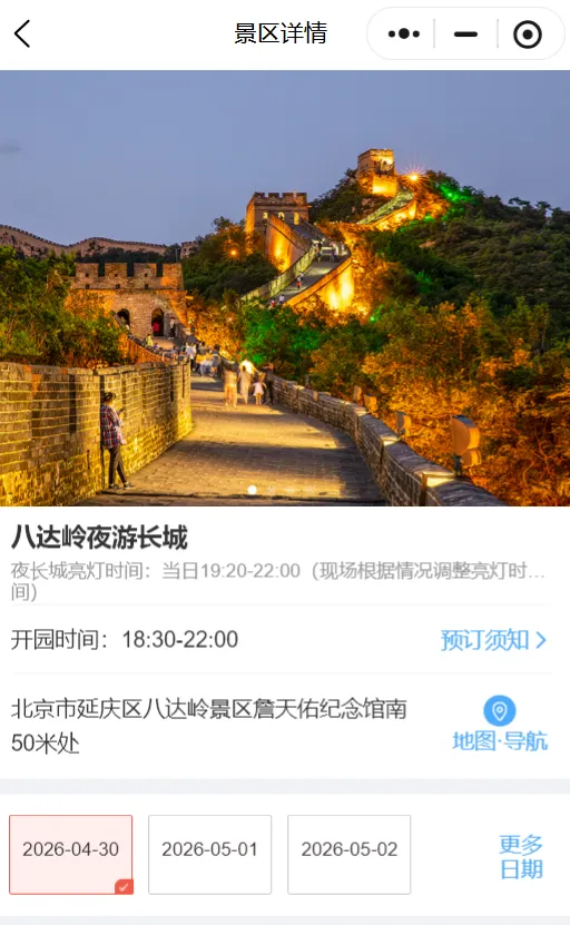 北京八达岭长城夜游时间与区域