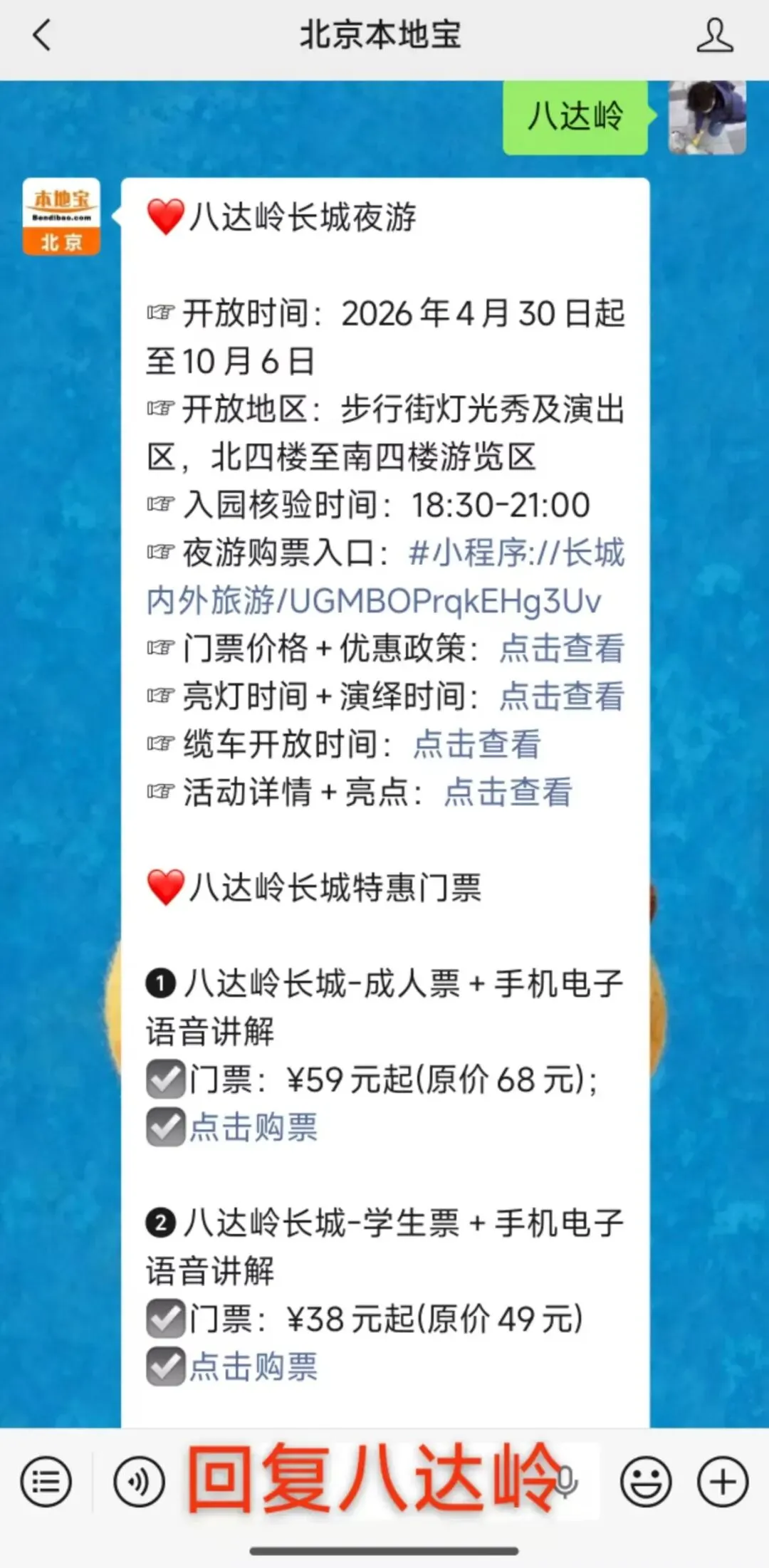 微信对话框回复【八达岭】