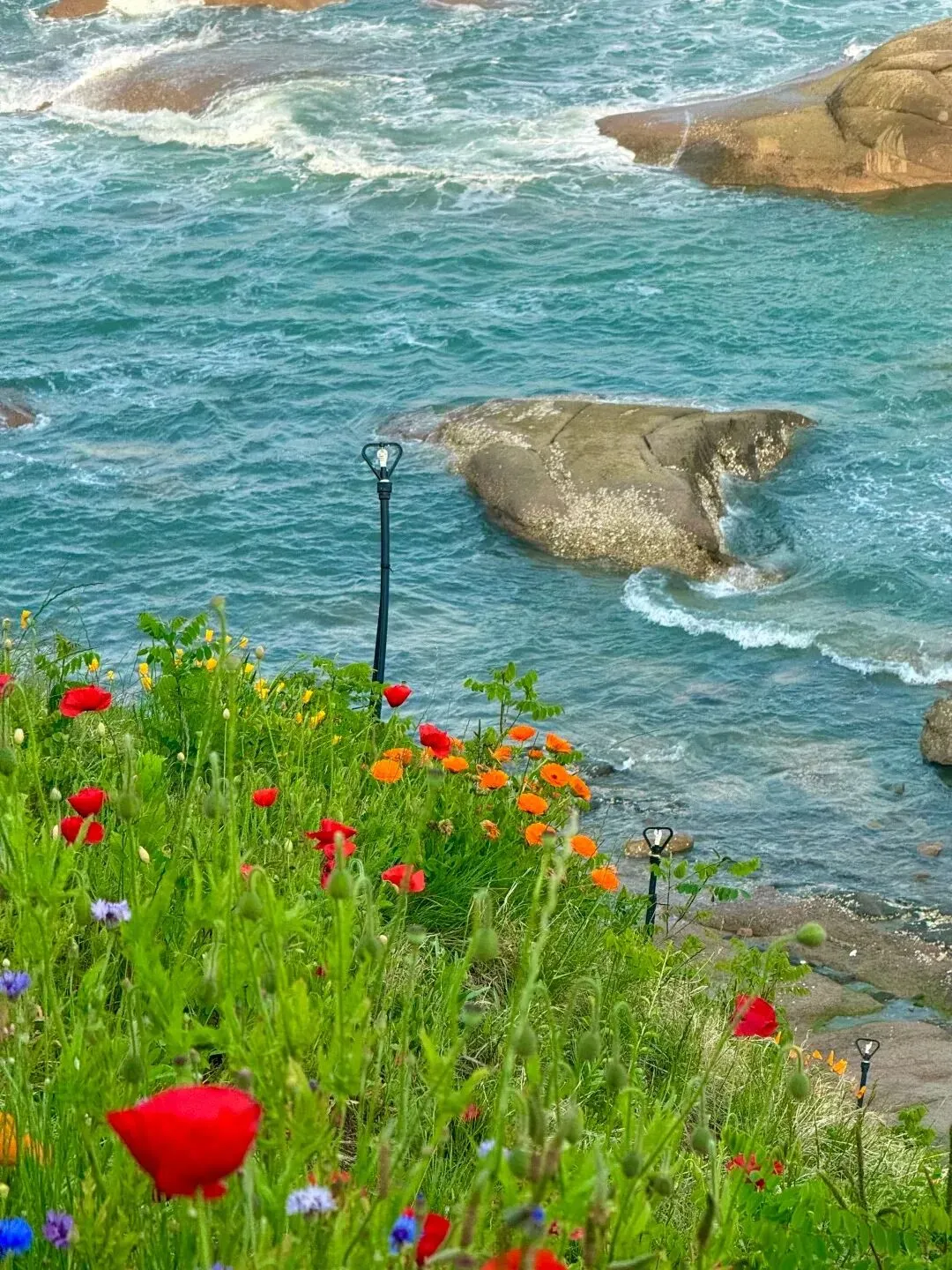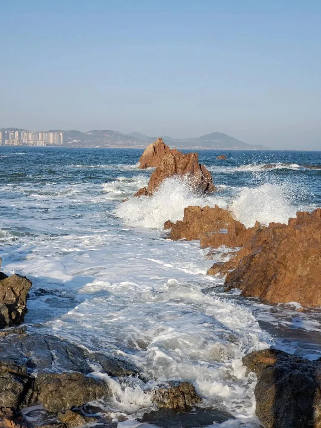 海岸线蜿蜒绵长,蔚蓝海水拍打着礁石