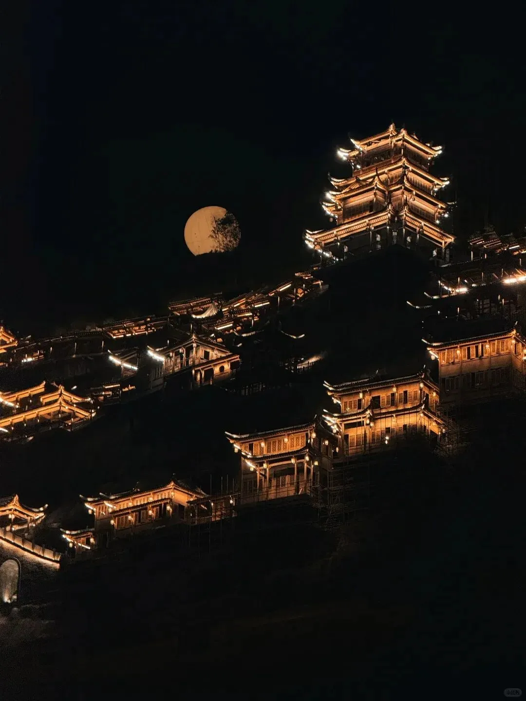 望仙谷崖壁飞悬,灯火绕古村