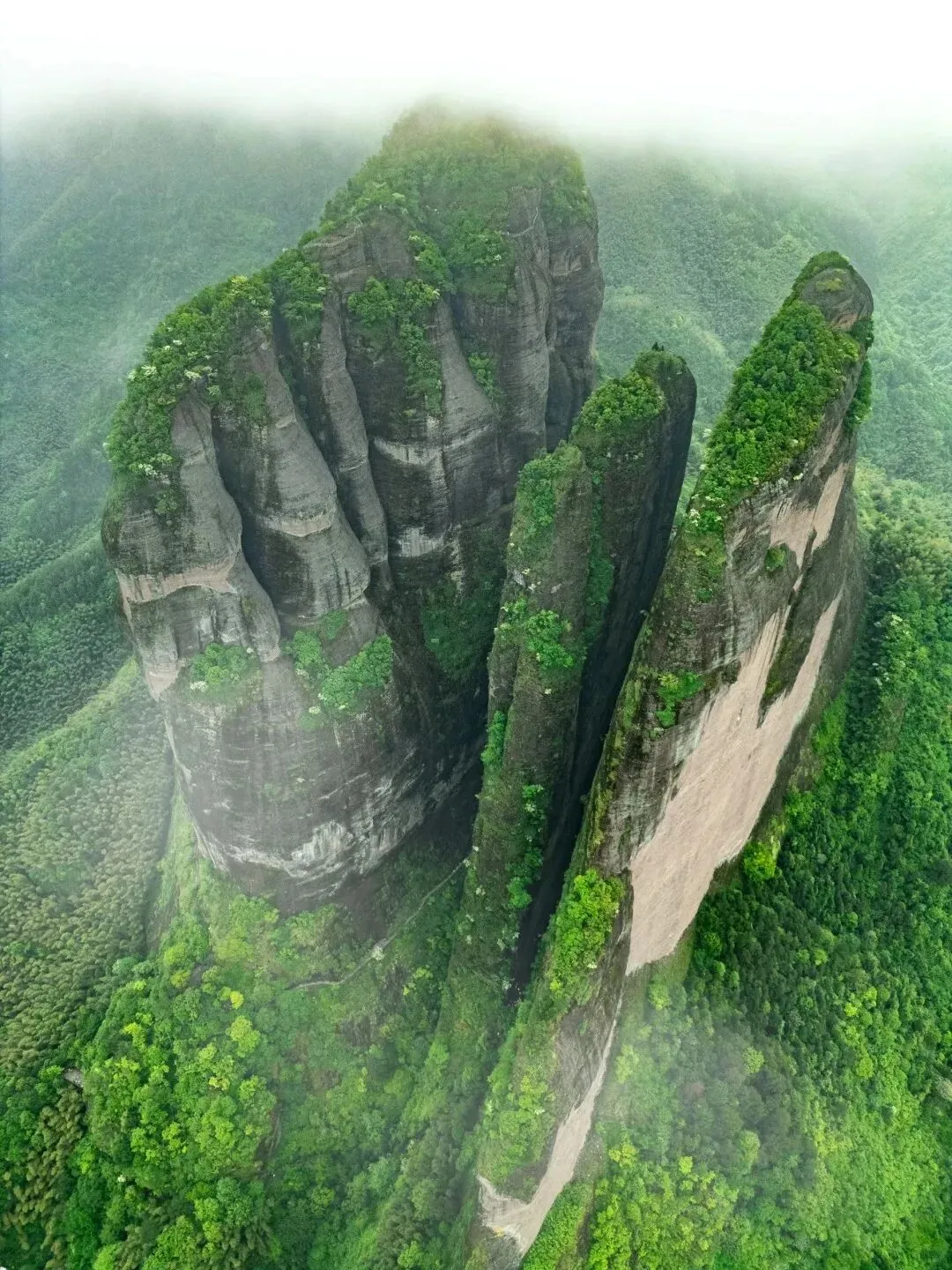 江郎山三峰擎天,丹霞立云端