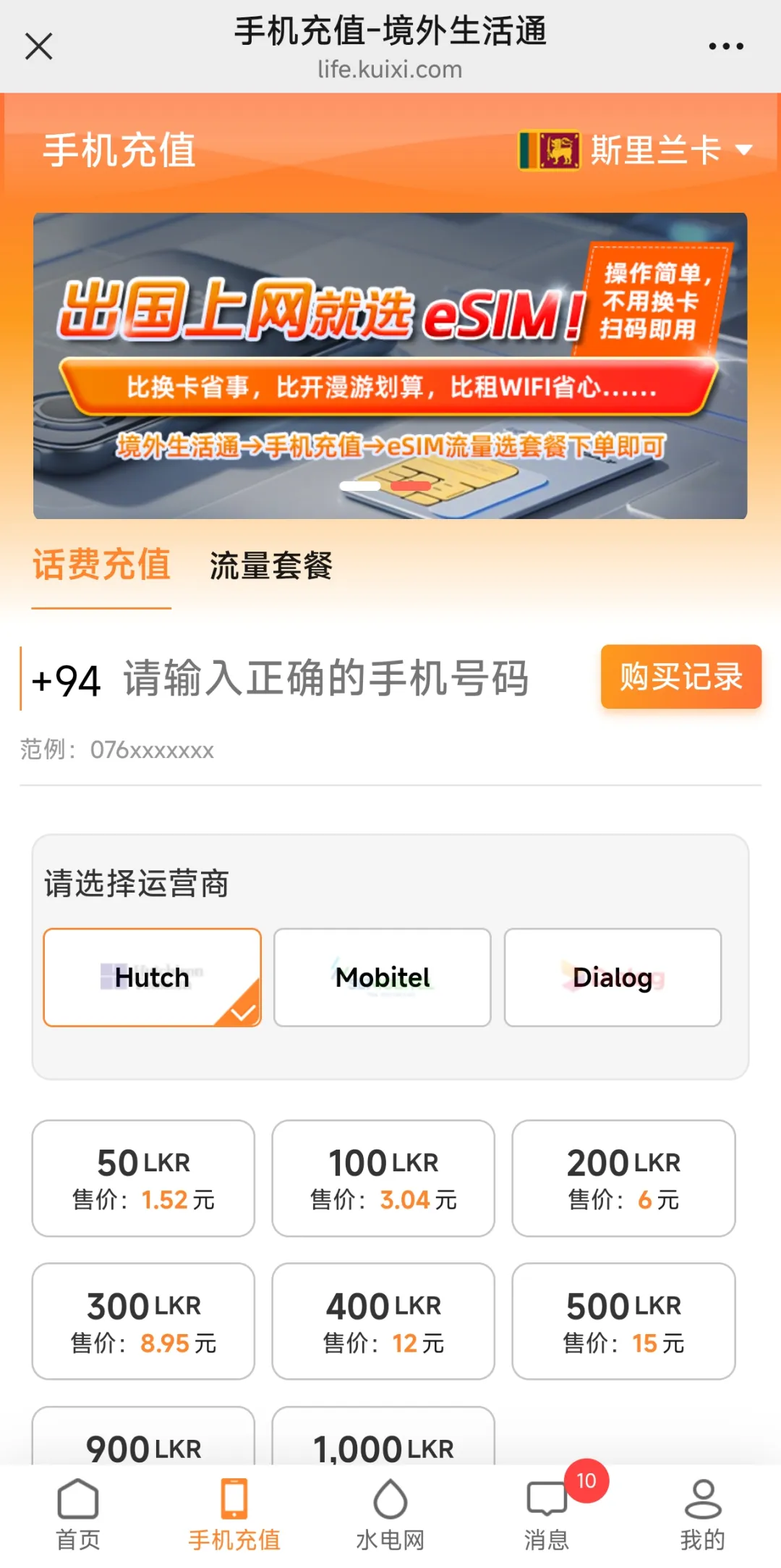 👉推荐使用境外生活通,提供斯里兰卡等130+国家及地区手机话费流量充值,支持700多家运营商,省心又方便!