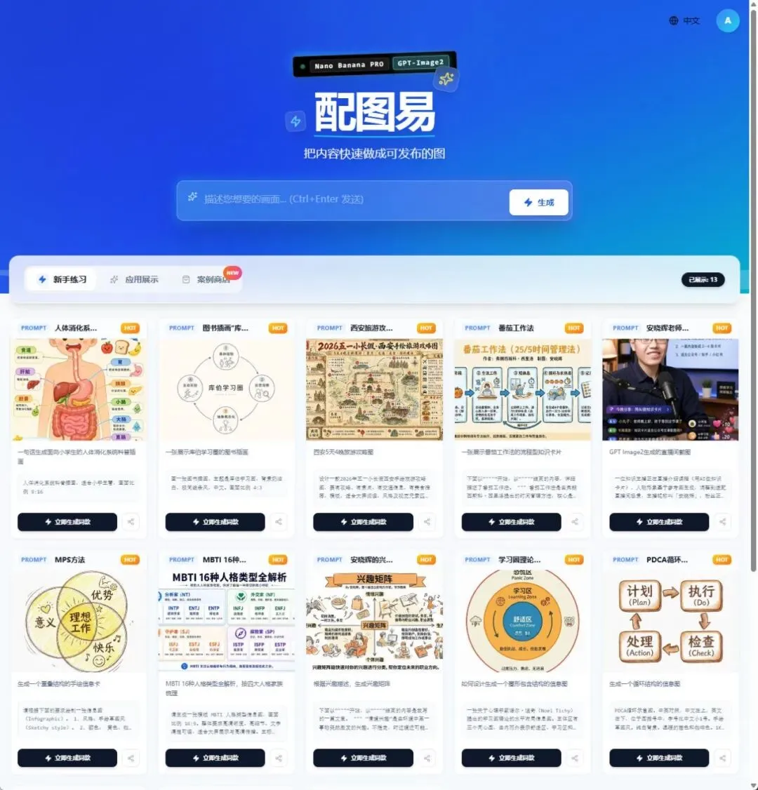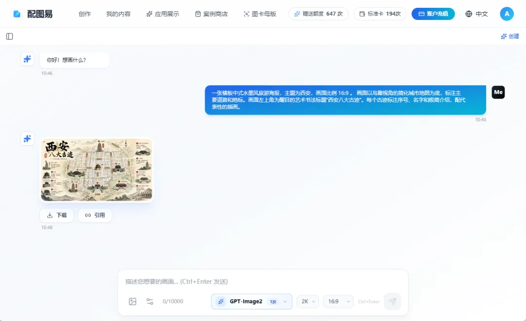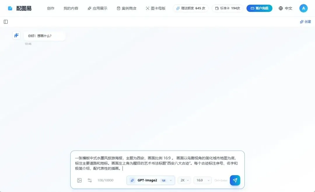 我发现了一个网站,叫配图易,接入了 GPT Image 2,打开网址就能用,出图效果很好。