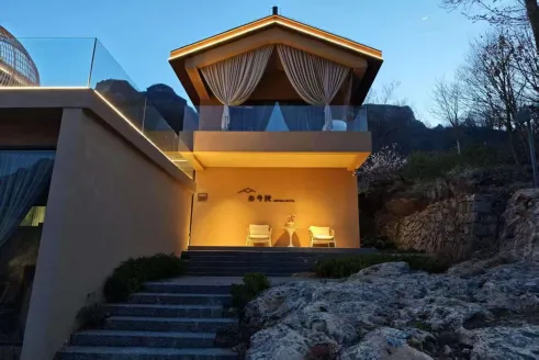 民宿配备会议室、茶室、多功能厅等多元空间,独立餐厅满足不同需求。14间客房可容纳40 - 60人,五星布草床品亲肤天然,Appelles轻奢洗浴用品带来极致享受。这里以自然为幕,日落归山、晚风轻抚,多间悬崖山居客房,治愈疲惫身心,让您暂别喧嚣,回归生活本真。2025年被评为河南省五星级民宿。