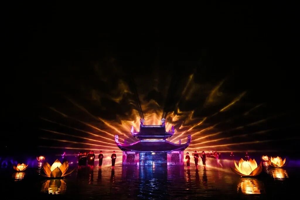 实景演出:《北圻精粹》是在河内国威县柴山乡石室山脚下石寺舞台上演出的实景剧。演出在4300平方米的湖面上展开,通过声光表演,带领游客漫游北圻农民的生活。参与实景演出的大部分演员是国威县的农民。