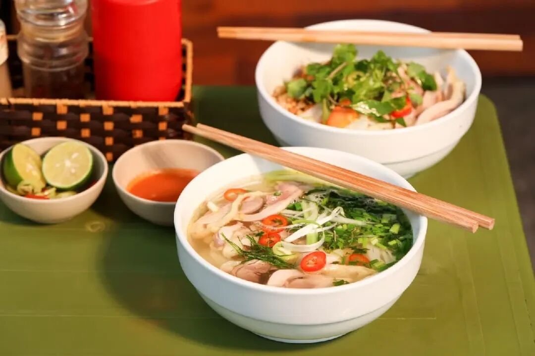 米线:河内人有很多种米线。最具特色的是烤肉米线、什锦米线、螺蛳米线、肉丸米线、芋梗米线等。