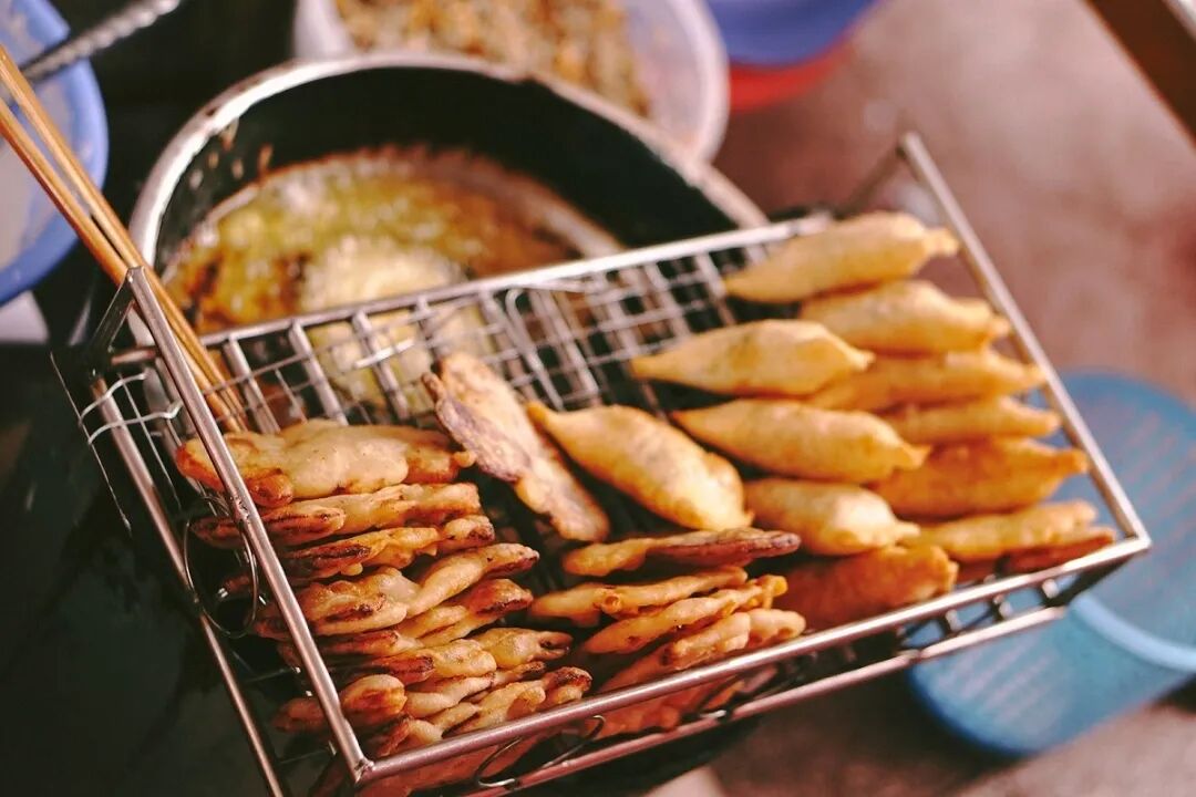 鱼肉仔细去骨,甘甜嫩滑,金黄芳香,入味透彻。茴香、青葱切段在热鱼锅里翻炒。食用时搭配烤脆饼、米线和虾酱——这是不可或缺的调味品,带来浓郁风味。一些推荐地址:炙鱼街14号吕望炙鱼脍;城街21号升龙炙鱼脍;泰河街171号老渔翁炙鱼脍等。