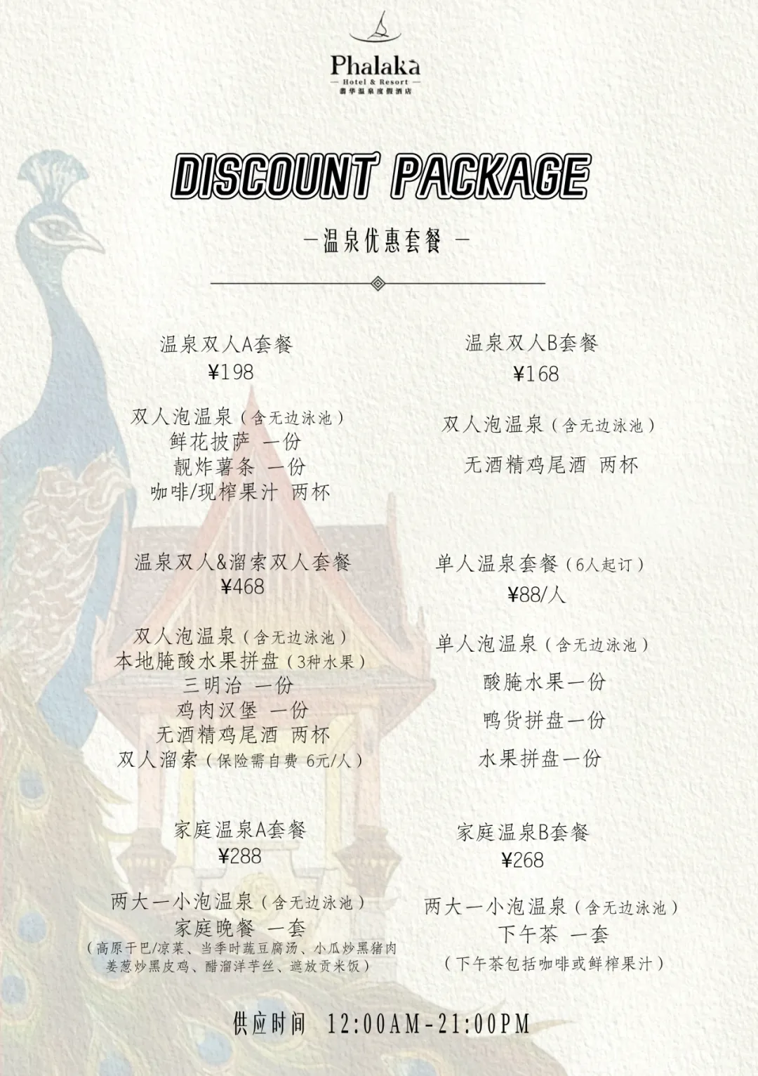 一边泡温泉,一边畅享多款精致下午茶 套餐,舌尖邂逅美味,与家人好友闲坐小聚,惬意慢享度假时光。