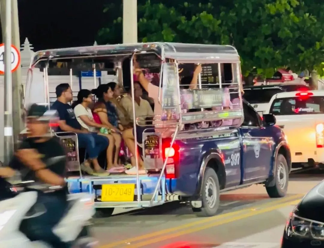 双条车(Songthaew)是泰国郊区和小城市中常见的交通工具,票价通常为10-30泰铢(约26元人民币),有固定路线,也可包车使用。
