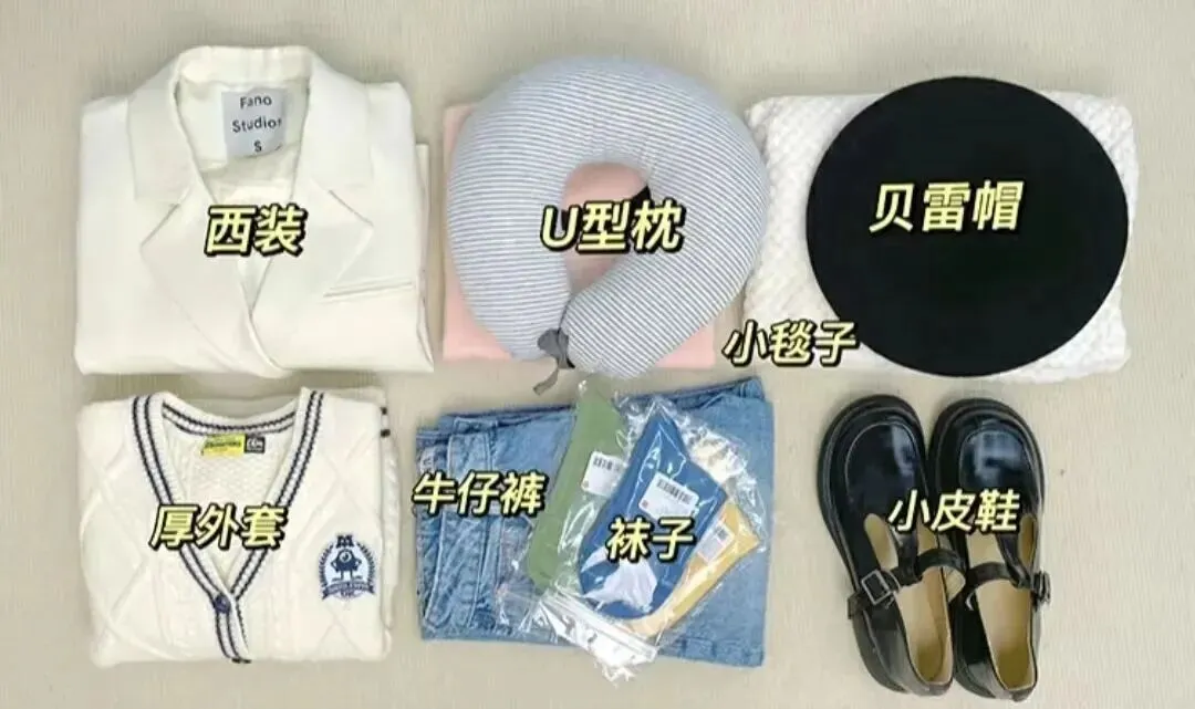 备注:一般按照出行的天数+1准备,比如三天的旅行可以带四套搭配好的衣服,多一套备用,记得带个薄外套或者披肩,飞机上空调很冷,如果早晚温差大也可以用上。