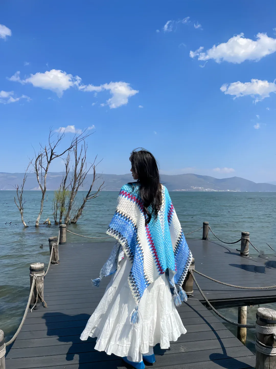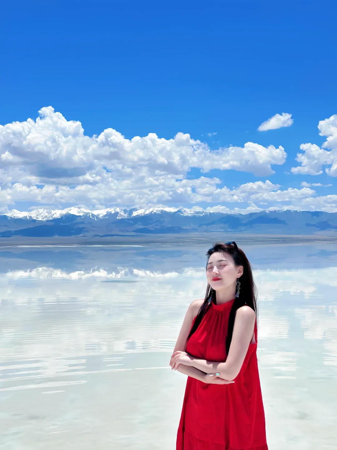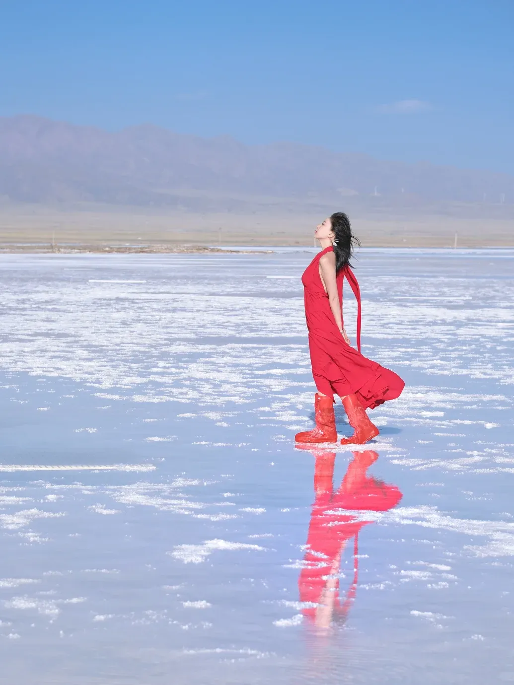 最好的搭配是一条垂感足的白色长裙,站在盐湖里等水波纹平静,拍倒影,你就是从湖里长出来的仙子