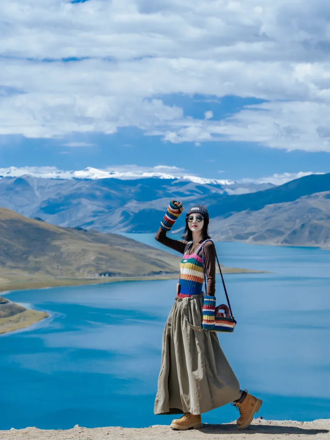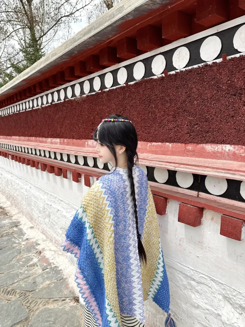 藏红、喇嘛黄、松石绿。这三个颜色是点睛之笔,不能大面积用,最适合出现在披肩、围巾、腰带、耳饰或内搭上