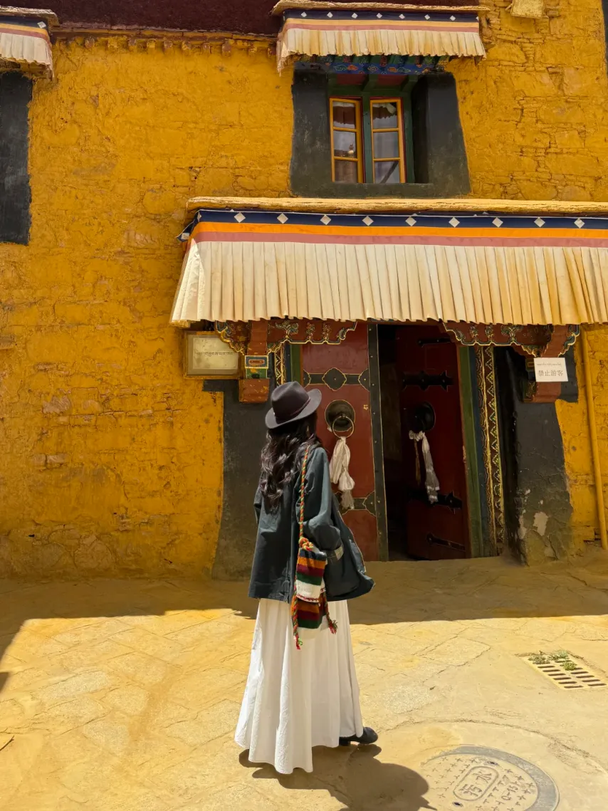 大面积用燕麦色、米白、亚麻本色、浅卡其、灰褐。这些颜色在红墙、白塔、金顶前是极干净的背景板,自带禅意