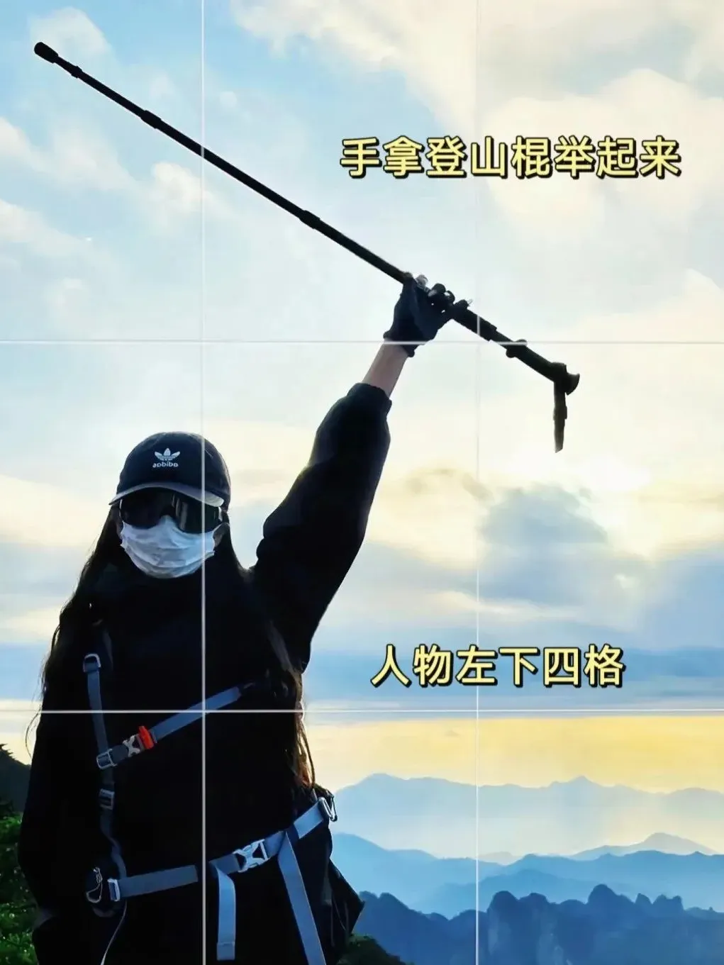 ⭐手拿登山棍举起来