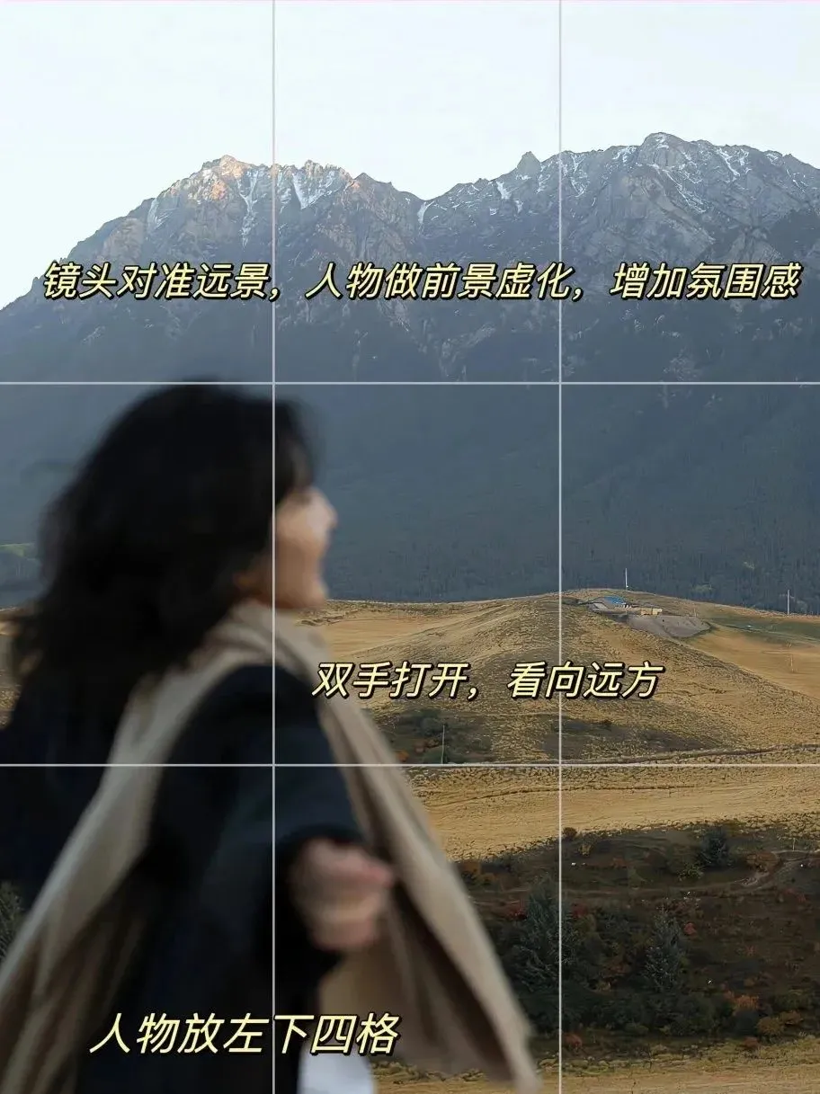 ⭐镜头对准远景,人物做前景虚化