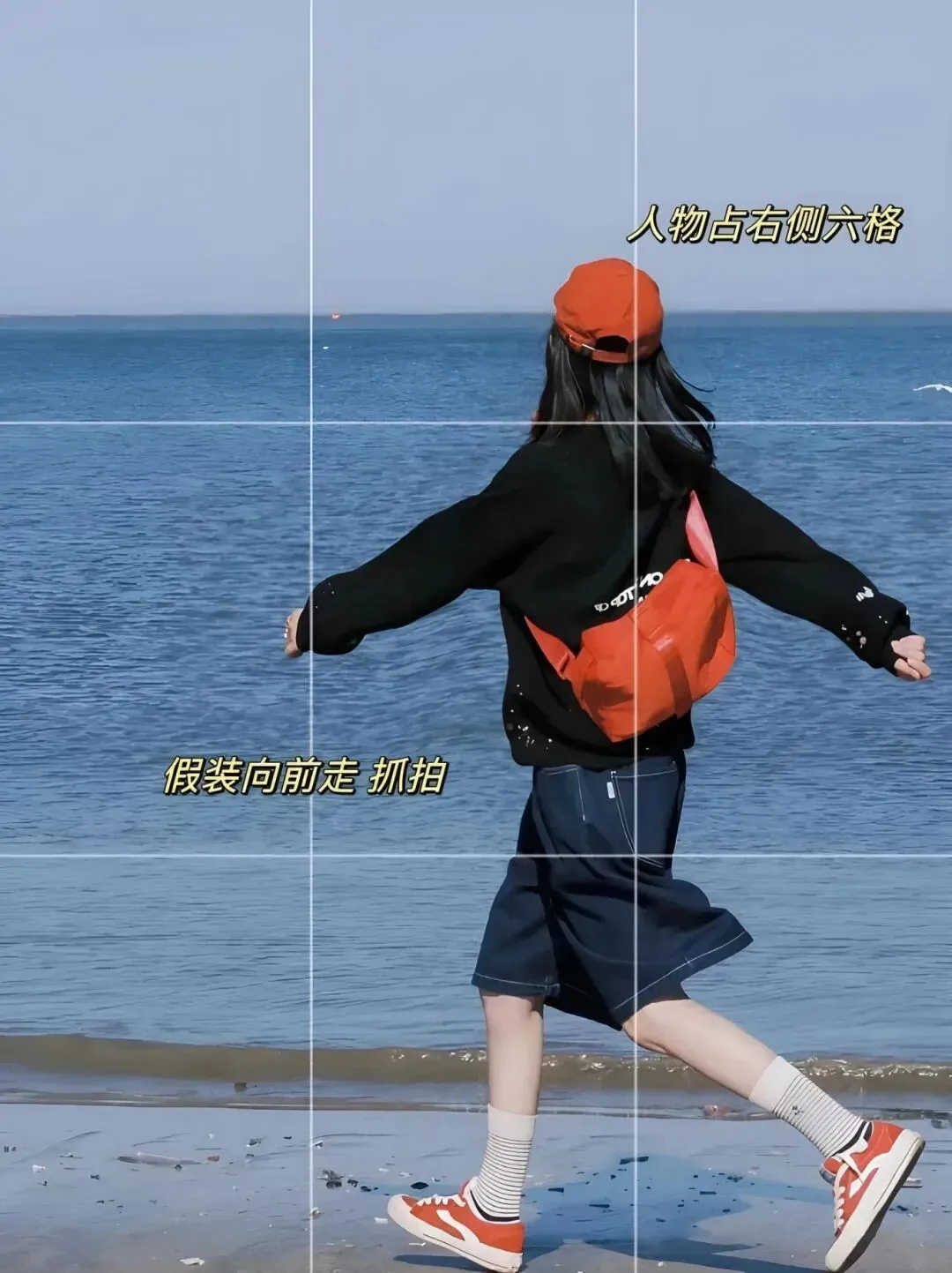 ⭐假装向前走抓拍,人物占右侧六格